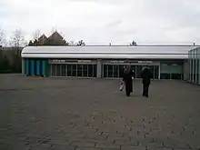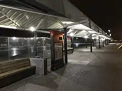 Bâtiment voyageurs de la gare TGV, vu depuis les quais de la gare routière Nord. | |