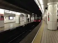 La gare est située en souterrain, sous le grand magasin Meitetsu.