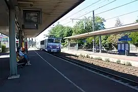 Le bâtiment voyageurs et l'entrée de la gare en 2017. | |