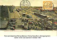 La « gare de Pékin » est mise en service en 1901. C'est une gare des Chemins de fer impériaux du Nord de la Chine (en), origine et terminus de la ligne de Pékin à Shanhaiguan. Le bâtiment actuel est inauguré en 1906[1].