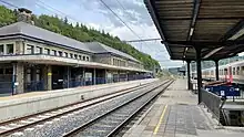 Bâtiment voyageurs et entrée de la gare. | |