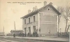 La gare de Saint-Michel est mise en service le par la Compagnie des chemins de fer de l'Est, lorsqu'elle ouvre à l'exploitation la section de Raon-l'Étape à Saint-Dié[3]. Par décision ministérielle du , elle prend le nom de Saint-Michel-sur-Meurthe[4].