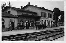 Une partie de l'ancien bâtiment principal de la gare, inutilisé pour le service voyageurs, est toujours présent.