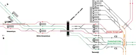 | Ligne(s) | Ligne circulaire d'Osaka Ligne Hanwa Ligne Yamatoji Ligne Midōsuji Ligne Tanimachi |