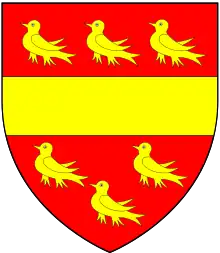 - Contrasting it with the previous verse referring to John de Engaigne whose arms were blazoned as Gules, a dancetée and crosslets or