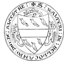 - Walter de Beauchamp (d.1328), d'Alcester, fils aîné et héritier[20]. En 1307, il combattait les Écossais et en 1317, il devint le gardien du château de Warwick et de ses terres à la suite de la mort de son neveu Guy de Beauchamp, 10e comte de Warwick (c. 1272 - 1315) qui laissa un fils en bas âge Thomas de Beauchamp, 11e comte de Warwick (c.1313-1369)[3].