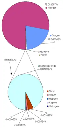 | Gaz carbonique | CO2 | 419 ppm ≈ppmv (mai 2021)[2] |
