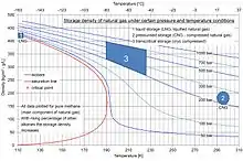 Le gaz sous sa forme habituelle est mesuré en unités de volume normalisées, c'est-à-dire dans les conditions normales de température et de pression (CNPT), en mètres cubes, ou pieds cubes aux États-Unis, tandis que le gaz naturel liquéfié est presque toujours mesuré en tonnes. Une tonne de gaz naturel liquéfié « léger » occupe un volume de 2,15 à 2,3 m3 selon sa composition exacte, mais, regasifié et ramené dans les CNPT, correspond à environ 1 380 m3 normalisés de gaz naturel[16]. En termes d'énergie (PCI), cette tonne de GNL correspond à 1,23 tonne d'équivalent pétrole, soit 51,66 gigajoules ou encore 14 350 kilowatts-heures[17].