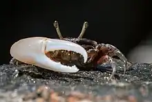 Le crabe violoniste Gelasimus vocans mesure de 1 à 2 cm[5].