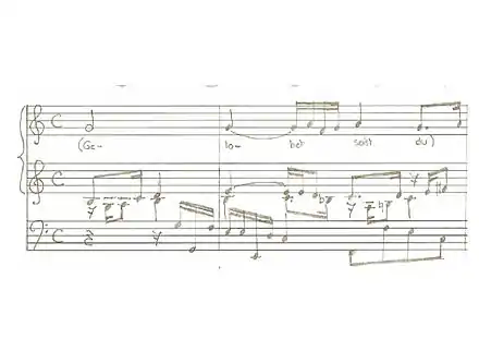 « Gelobet seist du Jesu Christ, dass du mensch geboren bist von einer Jungfrau das ist wahr. Dess freuet sich der Engel schaar Alleluja » (« Loué sois-tu seigneur Jésus-Christ, puisque tu t'es fait homme d'une vierge, cela est vrai. C'est pourquoi les anges du ciel se réjouissent. Alléluia. »)