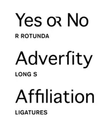 Contrairement à la plupart des autres polices neo-grotesque, la version actuelle de Geneva comprend quelques ligatures ainsi que des caractères désuets comme le S long et le R de ronde comme formes optionnelles.