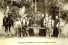 Les porteurs de la confrérie de Saint-Gens au départ de Monteux