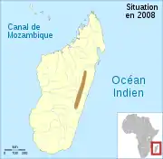 Cette espèce est endémique de Madagascar. Elle se rencontre de 600 à 1 200 m d'altitude de Fierenana jusqu'à Ranomafana[1],[2].