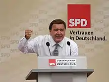 Gerhard Fritz Kurt Schröder [ˈɡɛɐ̯haɐ̯t fʁɪts kʊɐ̯t ˈʃʁøːdɐ][1] , né le à Mossenberg-Wöhren, est un homme d'État allemand, membre du Parti social-démocrate d'Allemagne (SPD).