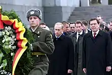Gerhard Schröder et Vladimir Poutine, en 2001 à Saint-Pétersbourg.