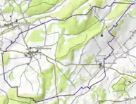 L'occupation des sols de la commune, telle qu'elle ressort de la base de données européenne d’occupation biophysique des sols Corine Land Cover (CLC), est marquée par l'importance des territoires agricoles (70,5 % en 2018), une proportion identique à celle de 1990 (70,6 %). La répartition détaillée en 2018 est la suivante : zones agricoles hétérogènes (52,1 %), forêts (29,5 %), prairies (18,4 %)[16]. L'évolution de l’occupation des sols de la commune et de ses infrastructures peut être observée sur les différentes représentations cartographiques du territoire : la carte de Cassini (XVIIIe siècle), la carte d'état-major (1820-1866) et les cartes ou photos aériennes de l'IGN pour la période actuelle (1950 à aujourd'hui)[Carte 1].