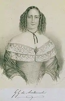 Gertrudis Gómez de Avellaneda (Puerto Príncipe, 1814 – Madrid, 1873) est une femme de lettres espagnole du XIXe siècle. Grande figure du romantisme cubain, elle passa la majorité de sa vie en Espagne. Outre plusieurs éditions de ses poésies chaque fois augmentée, on lui doit de nombreux romans ainsi que des pièces de théâtre.
