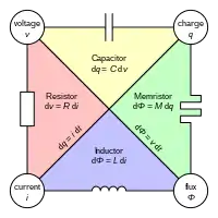 Son existence fut prédite en 1971[108] mais ce composant n’a été implémenté qu’en 2008[109]. Il n’a pas encore d’application commerciale en l’état actuel des recherches mais promet une formidable avancée dans le domaine des mémoires en ce qui concerne le degré d’intégration, la rapidité d’accès et la faible consommation[110],[111],[112].