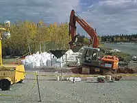 - en amont ; les déchets des mines et carrières d'uranium ou d'autres produits radioactifs (stériles minières, boues radioactives, radon) liés à l'extraction de l'uranium ou d'autres substances radioactives (cobalt, etc.). Ce sont souvent des produits peu radioactifs, mais accumulés en volumes importants et pour certains (uranium) à très longue durée de vie.