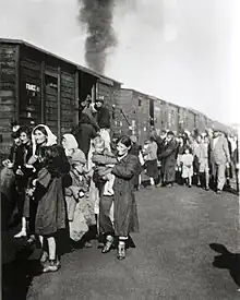 À son arrivée à Treblinka, le convoi ne compte plus que des wagons remplis de cadavres enchevêtrés, Juifs et Tziganes. Cette vision d'horreur est décrite par le prisonnier Sonderkommando Samuel Willenberg qui s'est échappé avec succès pendant la révolte de Treblinka[12] et a participé au déchargement des wagons de marchandises, décrivant de la manière suivante dans son livre Revolt in Treblinka :