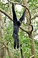 Il se déplace par brachiation à travers les arbres grâce ses longs bras.