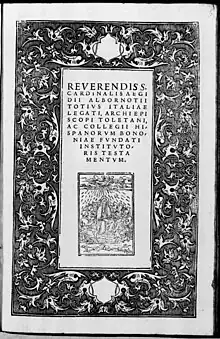 En 1357, il publie la Constitutiones Sanctæ Matris Ecclesiæ qui restera la constitution des États pontificaux jusqu’en 1816.