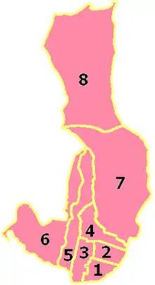 La municipalité se divise en huit paroisses civiles qui, à l'exception de celle de Choroní, ont pour capitale Maracay , chef-lieu de la municipalité et capitale de l'État d'Aragua dont elles constituent chacune et en partie l'un des quartiers :