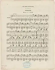 Dès la création, les caprices chorégraphiques insérèrent à la partition d'Adam, un morceau alors très en vogue, "Souvenir de Ratisbonne", dû à Johann Friedrich Burgmüller. A l'acte I du ballet, ce morceau devint le "Pas-de-deux des jeunes paysans"... Oublié aujourd'hui, Burgmüller composa un ballet l'année suivante, de nouveau sur un livret de Théophile Gautier, "La Péri".