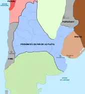 Après la conquête napoléonienne de l'Espagne, les vice-royautés sud-américaines s'engagent dans un processus d'indépendance qui se termine par la défaite de l'Espagne. Elles se divisent en une série de républiques indépendantes parmi lesquelles la Province cisplatine, la Confédération argentine, le Paraguay[34]. En ce qui concerne le Brésil, après l'invasion du Portugal par Napoléon, la famille royale s'exile à Rio de Janeiro et la colonie est élevée au rang de royaume. Jean VI rentre à Lisbonne en raison de la révolution libérale de 1820 pendant que son fils Pierre devient régent du Brésil. En 1822, il devient empereur du Brésil sous le nom de Pierre Ier. La politique centralisée du souverain conduit à des mouvements insurrectionnels et, en 1832, il est contraint d'abdiquer en faveur de son fils Pierre II[35].