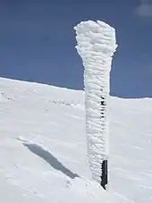 - en cas de fort gradient de température, le givre de profondeur se constitue lentement (plusieurs jours) à la base du manteau, avec un cristal en forme de gobelet (creux à l'intérieur),