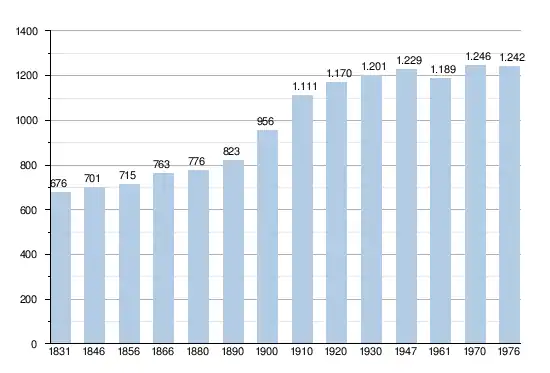 - Sources : INS, Rem. : 1831 jusqu'en 1970 = recensements, 1976 = nombre d'habitants au 31 décembre.