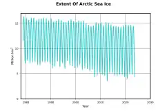 En septembre 2020, selon le National Snow and Ice Data Center des États-Unis, la banquise arctique a fondu sur environ 3,74 millions de km2 (donnant la seconde plus petite superficie de glace de mer depuis le début des enregistrements en 1979)[24].