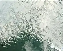 Il suffit que la couche supérieure d'eau refroidisse jusqu'au point de congélation pour qu'une glace de mer commence à se former[12]. La convection de la couche de surface implique les 100 à 150 mètres supérieurs, jusqu'à la pycnocline de densité accrue.