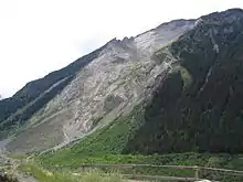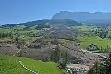 Flimser Bergsturz (de), en Suisse, le plus grand glissement de terrain connu au monde[réf. nécessaire] aux effets encore visibles, vu depuis une plateforme à touristes. Septembre 2022.