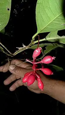 Exemple d'anthocarpe chez le genre Neea : le calice et le style restent sur le fruit mûr