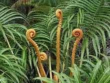 Vernation circinée des crosses de la fougère Sadleria cyatheoides