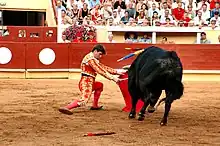 - emploi de la puntilla ou cachete, lame d'une quinzaine de centimètres qui permet d'achever l'animal à terre après l'estocade