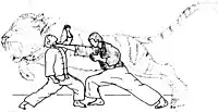 Forme technique ancestrale : ici une technique de déviation dans le "aka du point"