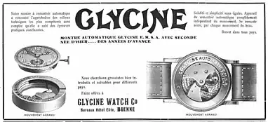 En 1923, la société est à nouveau renommée, et redevient Fabrique d’horlogerie La Glycine[3]. Deux ans plus tard la société ouvre une succursale à Plainpalais à Genève[4], ce qui lui permet de réaliser des mouvements arborant le prestigieux poinçon de la ville de Genève.