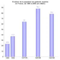 Selon J. Henry et J.Y. Monnat[13], au début du XIXe siècle, le goéland argenté était commun sur les littoraux picards, normands et bretons. La collecte des œufs de cette espèce la cantonnait à des zones peu accessibles, telles que falaises escarpées et îlots rocheux. À partir du milieu du XIXe siècle, la collecte d'œufs, devenue commerciale, et la chasse de cet oiseau, pour le loisir (« tirs sportifs ») ou pour alimenter en plumes le commerce de la chapellerie, ont abouti au tournant du XXe siècle à une disparition presque totale du goéland argenté sur les côtes françaises.