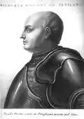 Un condottiere; malgré son échec dans la reprise de Città di Castello, il est nommé Gonfalonier afin de combattre Sigismond de Luxembourg en Toscane et les Prefetti di Vico dans le Latium, mais il est évincé car il abusait de sa position afin de satisfaire ses intérêts. Par la suite, il s'allie au Duché de Milan contre le pape. | |