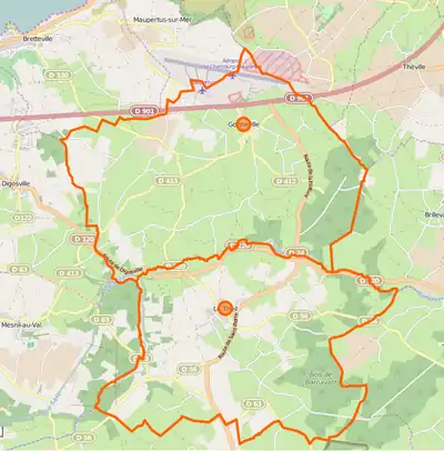 | Gonneville (siège) | 50209 | CC de Saint-Pierre-Église | 15,36 | 879 (2018) | 57