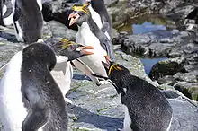 - (en) E.J. Woehler et C.A. Gilbert, « Hybrid Rockhopper-Macaroni Penguins, interbreeding and mixed-species pairs at Heard and Marion Islands », Emu, vol. 90, , p. 198-210