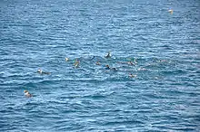 À l'instar des autres espèces de manchots, le gorfou est un animal social lors de la couvaison et pour l'alimentation ; les colonies de gorfous dorés sont parmi les plus grandes et les plus densément peuplées de toutes les colonies de manchots[8]. Hors de la saison de reproduction, les gorfous dorés sont pélagiques[9], ils se dispersent dans les océans à partir du mois d'avril ou du mois de mai jusqu'au mois d'octobre[10]. En 2009, une étude menée par une équipe française dirigée par le scientifique Charles-André Bost a découvert que les gorfous dorés des îles Kerguelen se dispersaient à l'est sur une zone de plus de 3 millions de km2[11]. Grâce à des capteurs de géolocalisation, 12 individus ont été suivis sur plus de 10 000 kilomètres sur cette période et se sont répartis entre les latitudes 47 à 49° sud et les longitudes 70 à 110° est dans l'océan Indien sans revenir une seule fois à terre[11]. Dans cette zone, connue sous le nom de convergence antarctique, le krill est absent[11].