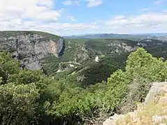 Les gorges de l'Ardèche sont des gorges pittoresques, haut lieu touristique du département français de l'Ardèche et frontalier de celui du Gard, dans leur cours inférieur. Elles forment un important canyon d'une trentaine de kilomètres, creusé par la rivière Ardèche dans le plateau calcaire, entre le pont d'Arc de Vallon-Pont-d'Arc et Saint-Martin-d'Ardèche, pouvant être descendues en canoë-kayak, ou par sentier de randonnée[1],[2], ou suivies du côté nord par la route touristique D 290, aménagée à travers la garrigue avec onze belvédères panoramiques. Elles sont classées réserve naturelle nationale depuis 1980, avec la réserve naturelle nationale des gorges de l'Ardèche[3],[4],[5].
