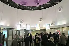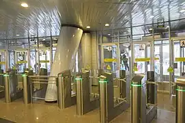Elle dispose d'un bâtiment d'accès, en surface, accessible par un escalier fixe. Il est en relation avec le quai par un tunnel en pente équipé de trois escaliers mécaniques[2].