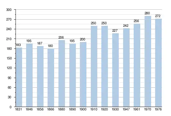 - Sources : INS, Rem. : 1831 jusqu'en 1970 = recensements, 1976 = nombre d'habitants au 31 décembre[2].