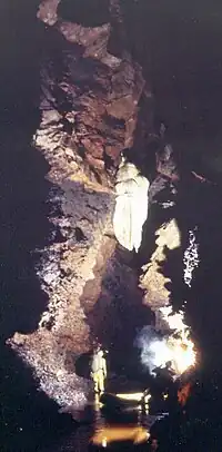 La Salle du Cône (repère 20) est une grande salle de 110 mètres de long, 30 de large et 70 de haut. Le cône d'éboulis et d'argile s'élève au Sud à 43 mètres au-dessus de la rivière.