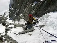 La progression en goulotte nécessite les techniques de cascade de glace et de rocher.