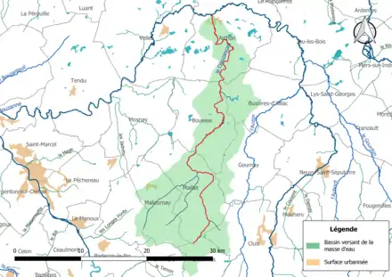 C'est un affluent de la Bouzanne, donc un sous-affluent de la Loire, par la Creuse et la Vienne.
